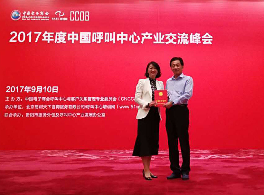 9月10日,由中國電子商會呼叫中心與客戶關系管理專業(yè)委員會(CNCCA)主辦的“2017 年度(第十三屆)中國最佳呼叫中心頒獎典禮暨行業(yè)發(fā)展年會” 在人民大會堂隆重舉行,組委會邀請了來自銀行、保險、家電、電子商務、互聯(lián)網(wǎng)等多個行業(yè)不同領域的高端運營者或權威專家800余人參會,鴻聯(lián)九五集團副總裁高路女士也應邀出席了會議,本次會議也得到來自CCTV、BTV、新浪、騰訊、搜狐、新京報、北京晚報等100余家媒體支持,對會議進行專題報道。